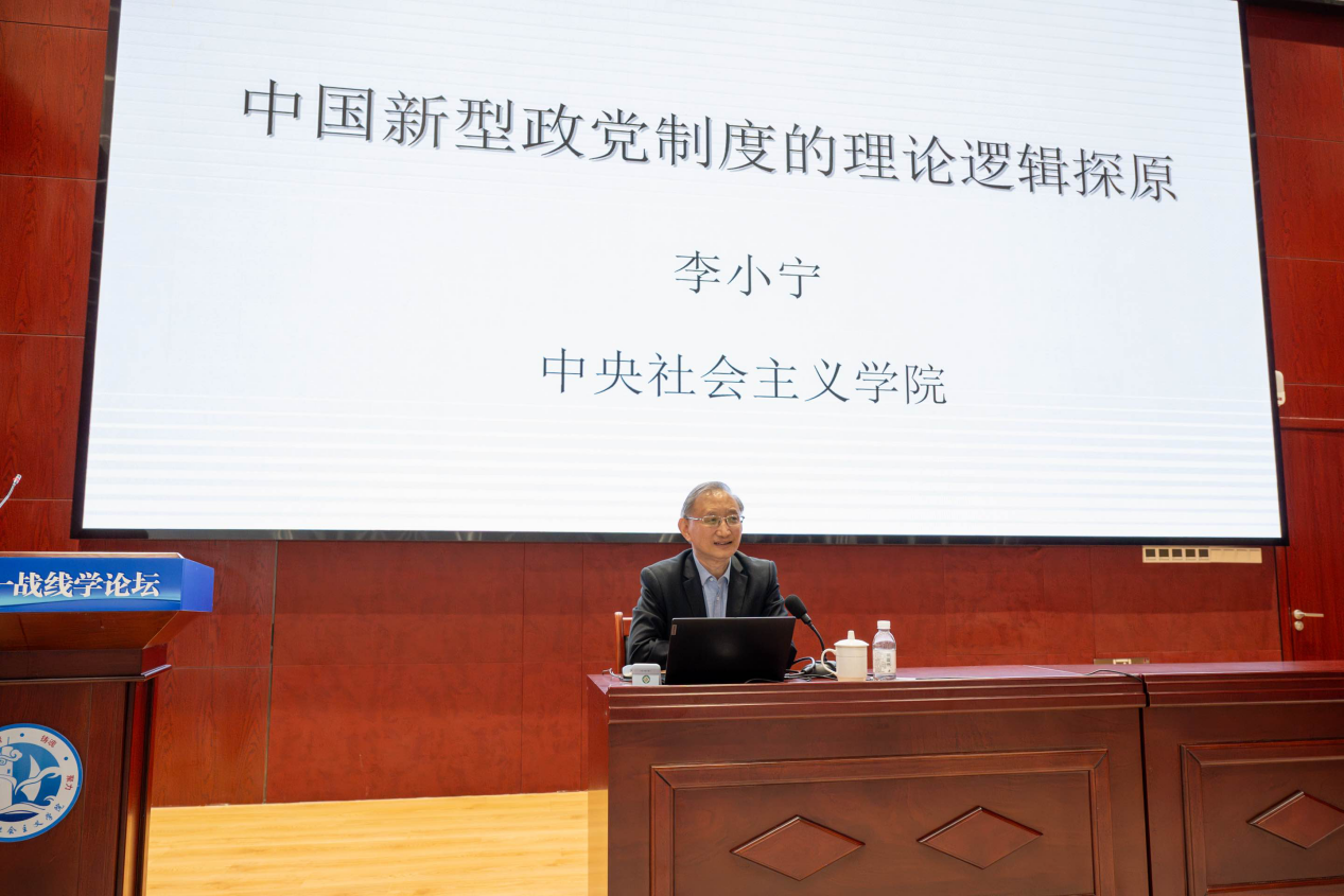 李小宁在题为“中国新型政党制度的理论逻辑探原”的主旨报告中指出中国新型政党制度理论逻辑的起点是“阶级斗争”和“无产阶级专政”学说,本原是由“阶级联盟”构成的“人民”。对“人的根本”即“个人与社会”关系的解答是“人民本位”。在此基础上建立了“人民民主专政”的国家政治制度,与这个国家政治制度相适应的政党制度就是中国新型政党制度,中国共产党是这套理论及制度的缔造者。