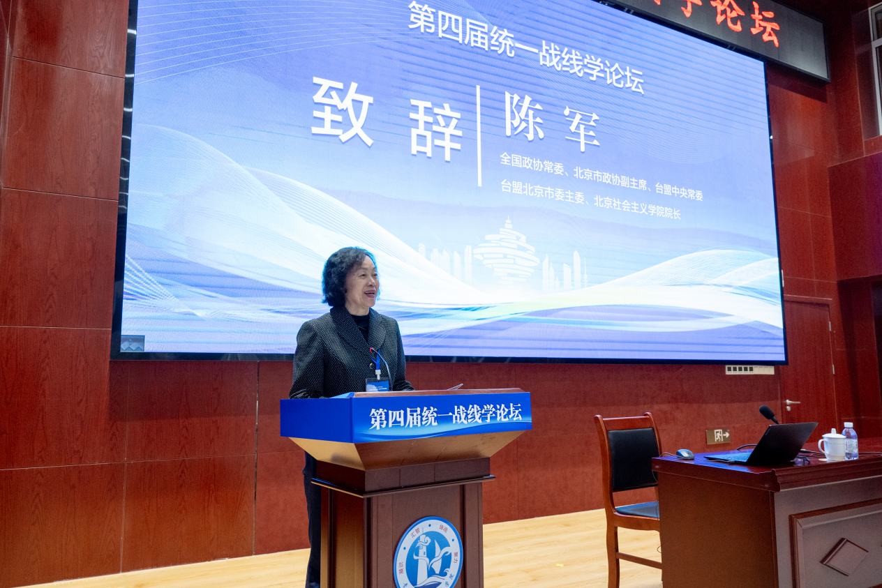陈军在致辞中以一系列重大时间节点简要回顾了“统一战线是一门科学”走过的80年发展历程,充分肯定了统一战线学论坛自2020年举办以来所取得的各方面成果。她表示,五年来,统一战线学论坛产出了一大批优秀成果,促进了统一战线学学科建设与研究生教育等协同发展,一批批青年才俊脱颖而出。论坛的影响力和关注度越来越高,共同致力于推动统一战线学建设发展的朋友圈越来越大。未来,应加强与全国范围内的统战、社院系统各单位协同联动,持续办好论坛、提升论坛质效,围绕发展壮大新时代爱国统一战线、推动统战工作高质量发展、破解系列重大理论和实践课题,发出论坛声音、服务中央决策、助推人才辈出,推动统一战线学建设发展与大统战工作格局相适应。
