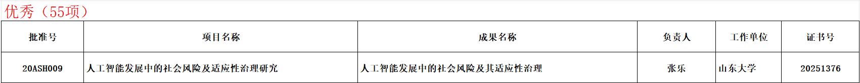 近日,全国哲学社会科学工作办公室公告了2025年4月国家社科基金年度项目结项情况,由滚球买球的app官网张乐教授主持的国家社科基金重点项目“人工智能发展中的社会风险及适应性治理研究”(项目批准号:20ASH009),在相关研究领域取得了一系列重要成果,获评“优秀”结项,为人工智能的健康发展与风险治理提供了关键理论支撑和实践指导。