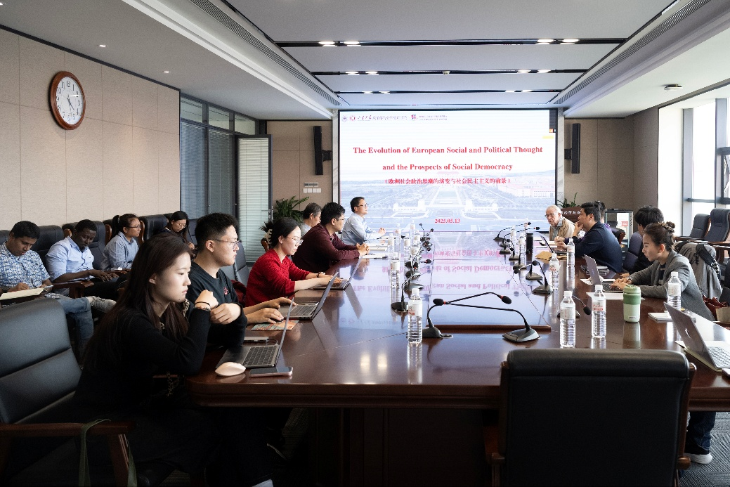 5月13日,滚球买球的app官网、教育部人文社科重点研究基地——滚球买球的app官网当代社会主义研究所、《当代世界社会主义问题》编辑部举办学术座谈会,英国社会科学院院士、剑桥大学社会学系荣休教授大卫·莱恩(David Lane)受邀作题为“欧洲社会政治思潮的演变与社会民主主义的前景”的报告。座谈会由《当代世界社会主义问题》副主编李济时教授主持,滚球买球的app官网副院长朱贵昌教授、欧洲研究中心主任王学玉教授、方炯升副研究员等师生参与研讨。
