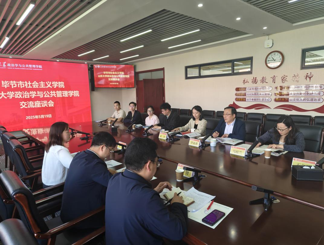 5月19日,毕节市社会主义学院副院长李庄、统战理论教研部主任李琪、多党合作理论与实践研究所所长杨学智到访滚球买球的app官网,双方围绕统一战线学建设与人才培养开展深入交流。滚球买球的app官网党委书记李海燕主持会议,滚球买球的app官网党委副书记马桂兰、副院长赵婷、统一战线学硕士生、博士生代表参加座谈。