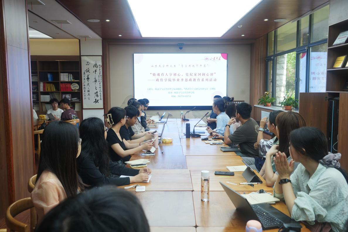 近日,滚球买球的app官网举办“铸魂育人守初心,党纪家国润心田”——导学思政下午茶毕业季思政教育系列活动。政管学院副教授、当代社会主义研究所副研究员王鹏权担任主讲人,为毕业生和学生党员带来了一场具有深刻内涵的思政教育专题讲座。活动由学院2021级博士毕业生辅导员赵玉洁主持,学院30余名师生参与此次活动。