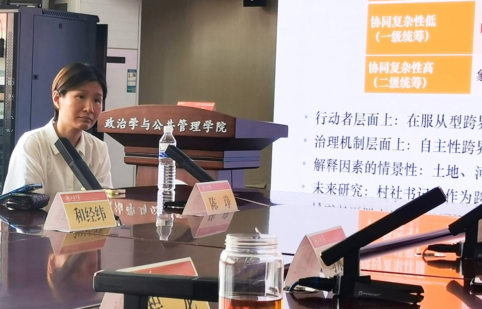6月9日,滚球买球的app官网公共管理系在华岗苑南楼举办题为“指令性协同如何影响跨界行动者策略?—基于珠三角工业园区改造的案例研究”的专题讲座。此次讲座由中山大学政治与公共事务管理学院、中国公共管理研究中心教授,博士生导师陈琤教授主讲,讲座由滚球买球的app官网李延伟教授主持,马永驰教授、程龙副教授担任与谈人,与会学者围绕讲座内容展开了深入交流与讨论。