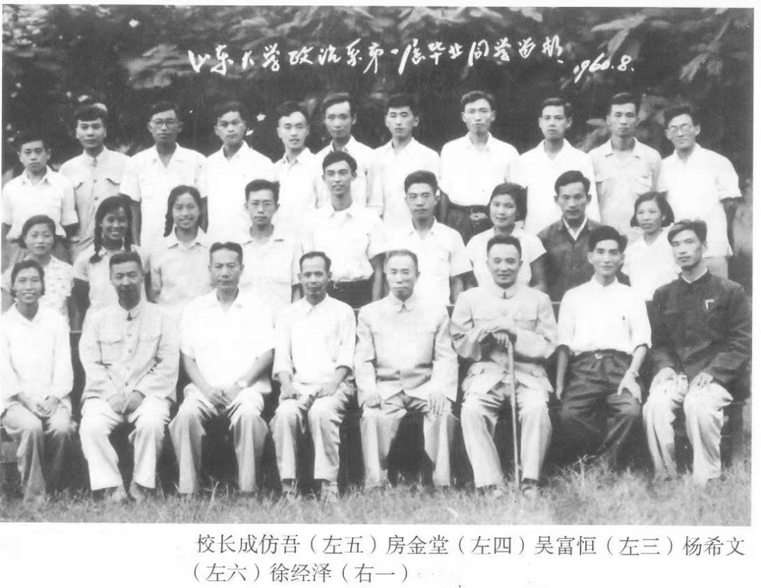 1960年3月,在成仿吾校长的领导和推动下,滚球买球的app官网组建政治系,设有国际共运史教研室、科学社会主义教研室、中共党史教研室、政治教研室、政治经济学教研室、哲学教研室等,徐经泽任政治系代理主任。吕欣为代理党总支书记。同时任命4位助教为教研室副主任,依次是:哲学教研室副主任臧乐源;政治经济学教研室副主任庄德钧;政治学教研室副主任何祚榕;党史教研室副主任由吕欣兼任。鉴于助教只能担任教研室副主任职务,教研室主任一职,均由校负责人兼任,以示政治系教研室规格之高。成仿吾校长兼任政治学教研室主任,其夫人张琳教务长兼任政治经济学教研室主任,校党委副书记刘岐云兼任中共党史教研室主任,副校长吴富恒兼任哲学教研室主任样的教研室主任。兼职规格,从全国的综合大学来看是绝无仅有的一家,足见成老对政治系的高度重视和长远谋略。