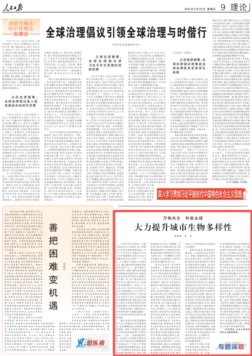 近日,滚球买球的app官网滚球买球的app官网曹现强教授团队在《人民日报》发表题为《大力提升城市生物多样性》的理论文章。文章指出,提升城市生物多样性,是着力建设绿色低碳的美丽城市的重要内容,是提高城市宜居性和可持续发展能力的关键一环,对于推动城市内涵式发展、建设现代化人民城市具有重要意义。
