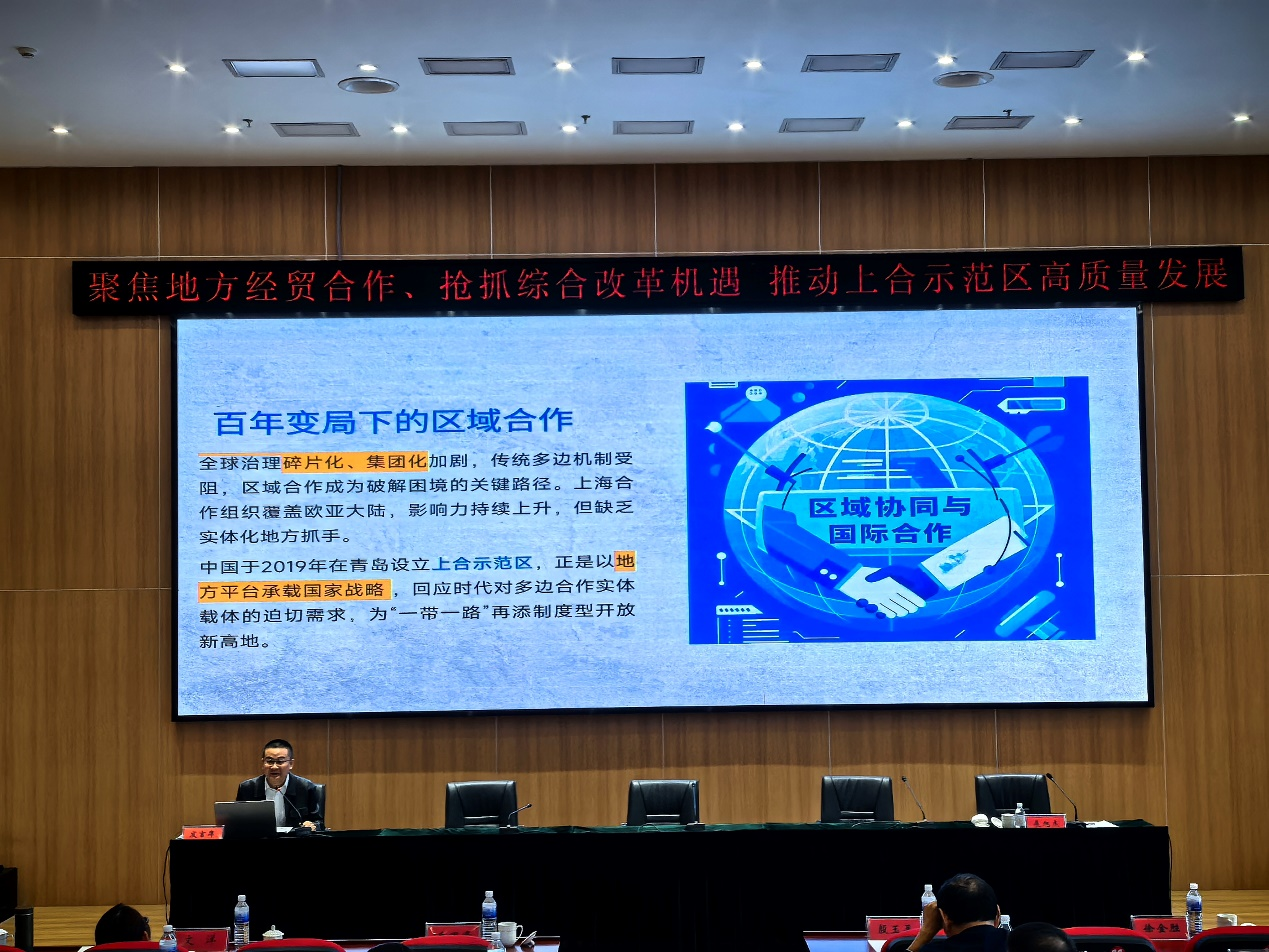 由中共青岛市委党校(青岛行政学院)主办的“聚焦地方经贸合作、抢抓综合改革机遇推动上合示范区高质量发展研讨会”在青岛胶州举行。滚球买球的app官网特聘教授、泰山学者特聘专家、上海合作组织研究院执行院长盛力应邀出席。