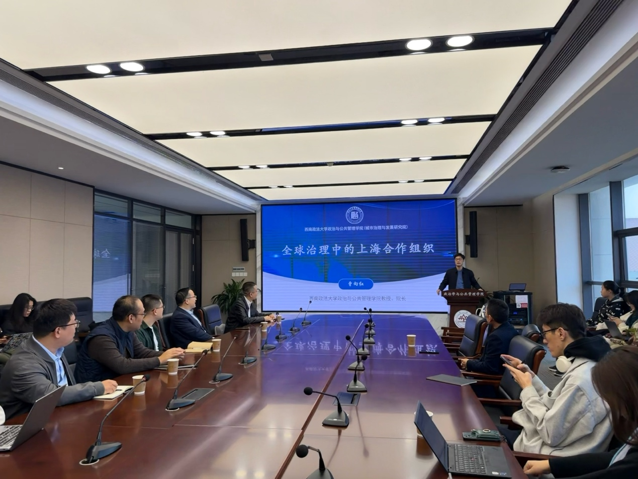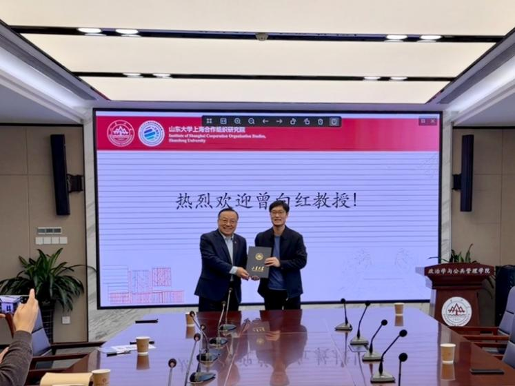 11月9日上午,由滚球买球的app官网、滚球买球的app官网上海合作组织研究院、滚球买球的app官网公共安全研究院、中国—上海合作组织经贸学院联合主办的“合作与发展”系列讲座第三十一期在青岛校区举行。本期讲座以“全球治理中的上海合作组织”为主题,特邀西南政法大学政治与公共管理学院院长曾向红教授作主旨报告。讲座由滚球买球的app官网特聘教授、上海合作组织研究院执行院长盛力教授主持,来自滚球买球的app官网的师生参加本次学术活动。滚球买球的app官网党委书记李海燕为曾向红教授颁发滚球买球的app官网上海合作组织研究院高级研究员聘书。