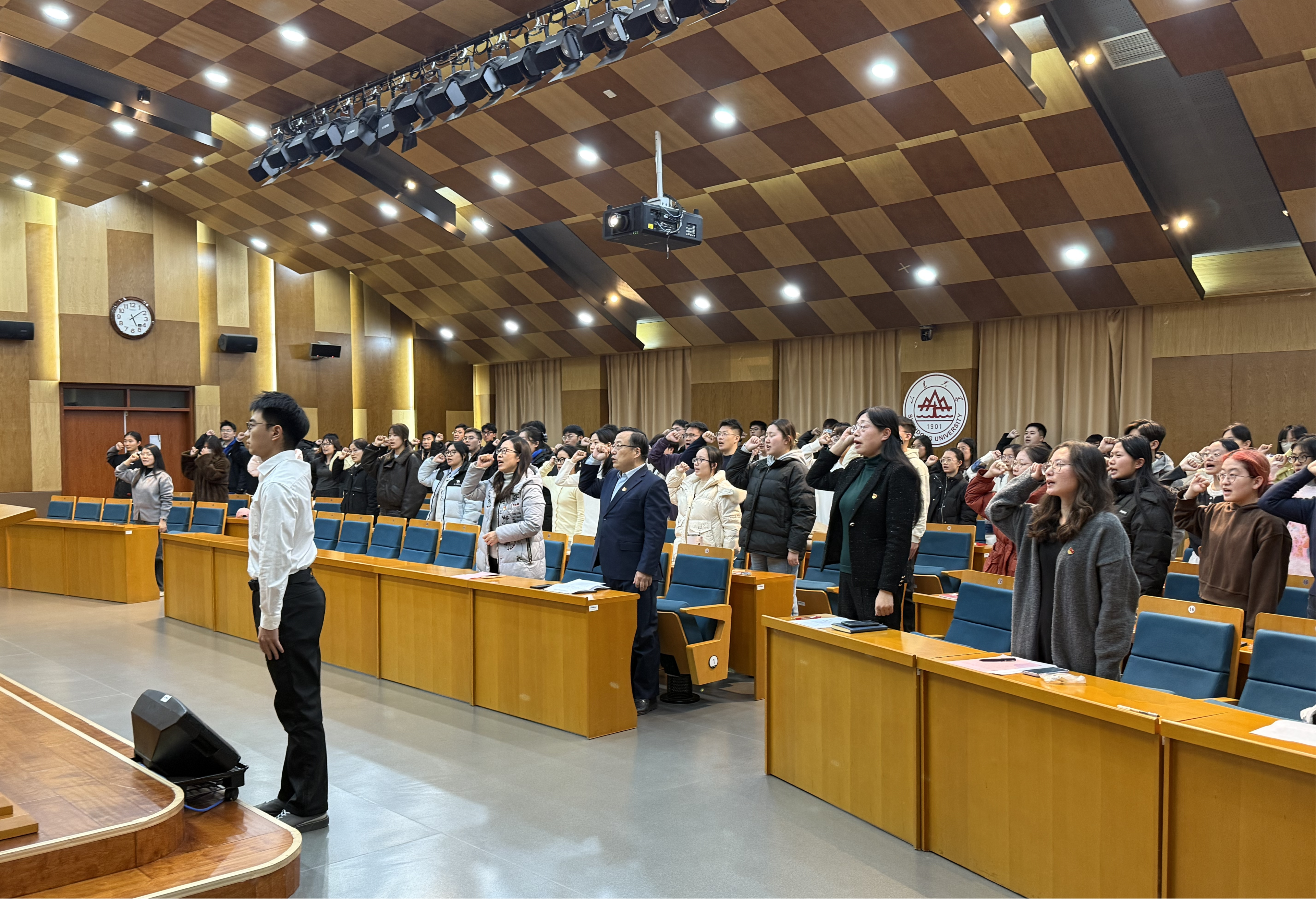 12月4日,滚球买球的app官网举行新党员入党宣誓仪式。学院党委书记李海燕出席会议并讲话,会议由学院党委副书记石莹主持。