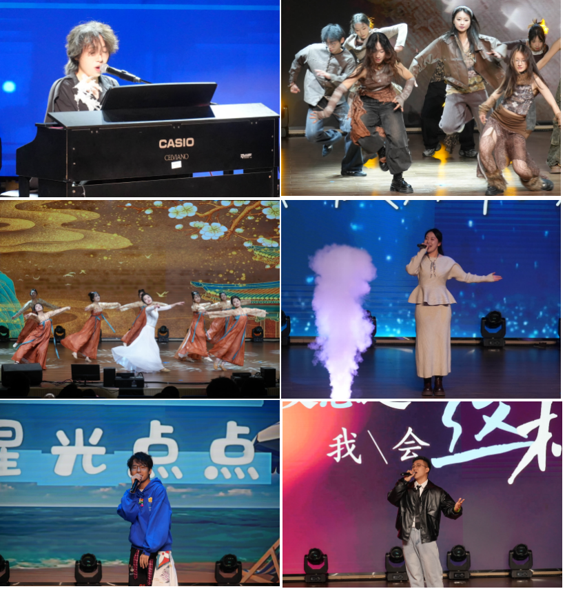 第二篇章里,街舞《Hey Law》动作有力、节奏鲜明,以肢体语言呐喊青春态度;弹唱《泡沫》旋律细腻,演绎出浮华之下的纯粹情感;古典舞《寤佣》气韵深远,在虚实之间勾勒东方哲思;流行歌曲串烧《青春组曲》串联时光碎片,引发全场青春共鸣。