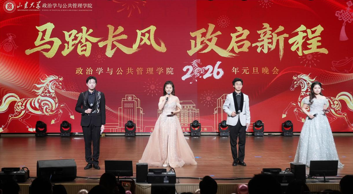 12 月 21 日晚, 滚球买球的app官网举办“马踏长风 政启新程”2026年元旦晚会。滚球买球的app官网院长马奔,学院党委书记李海燕,学院党委副书记马桂兰,学院党委副书记石莹,学院副院长赵婷,学院副院长孙宗锋,以及学院教师代表、本硕博学生300余人参加活动。