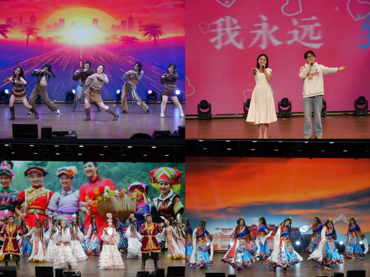 第三篇章中,韩舞《diamond》舞步精准、队形灵动,诠释追求完美的青春誓言;对唱《请给我一首歌的时间》交织甜蜜情愫,定格动人时刻;民族舞串烧《舞绘中华》融合各族文化,展现五十六个民族亲如一家的和谐图景;最后,全体演员共同演绎《相亲相爱》,为晚会画上圆满句号。