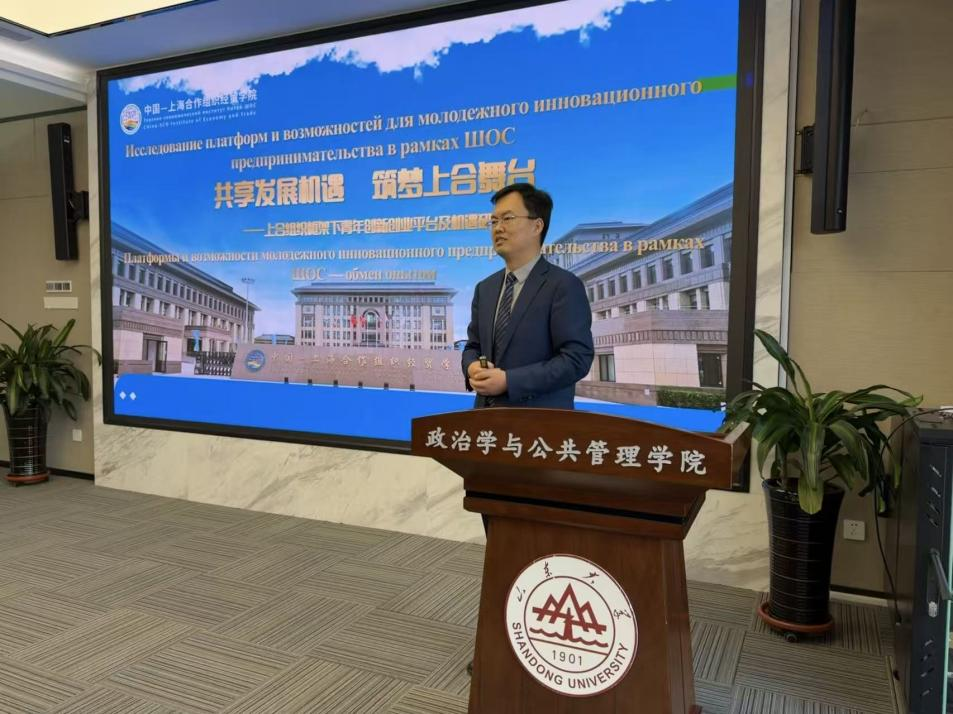 12月25日,由滚球买球的app官网、滚球买球的app官网上海合作组织研究院、滚球买球的app官网公共安全研究院、中国—上海合作组织经贸学院联合主办的“合作与发展”系列讲座第三十八期在青岛校区举办。本期讲座特邀中国—上海合作组织经贸学院院长、多边经贸合作与国际人才培养领域专家郑师担任主讲嘉宾,主题为“共享发展机遇 筑梦上合舞台——上合组织框架下青年创新创业平台及机遇”。滚球买球的app官网特聘教授、泰山学者特聘专家、上海合作组织研究院执行院长盛力主持讲座,滚球买球的app官网及法学院部分师生参加了本次学术交流。