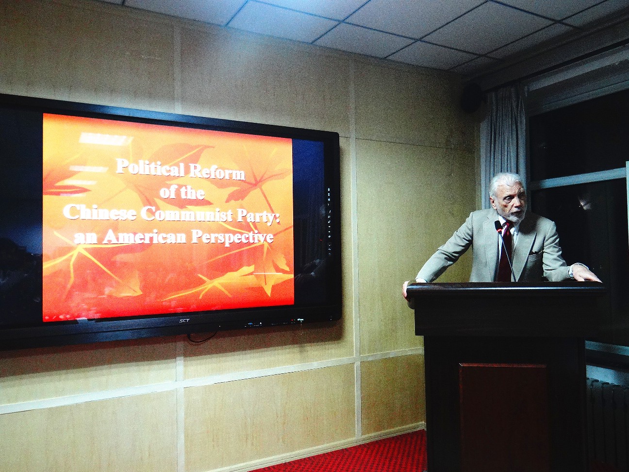 2016年11月18日晚,应教育部人文社科重点研究基地滚球买球的app官网当代社会主义研究所、滚球买球的app官网滚球买球的app官网之邀,美国加州大学伯克利分校中国研究所资深教授罗德明博士(Pro.Lowell Dittmer)前来滚球买球的app官网、当代社会主义研究所进行访问,并作了题目为《中国的改革发展》(《On the Reform of the Chinese Communist Party》)的学术讲座。讲座由滚球买球的app官网当代社会主义研究所所长崔桂田教授主持,中国人民大学马克思主义学院路克利老师担任翻译。讲座吸引了相关专业的50余名师生前来聆听。