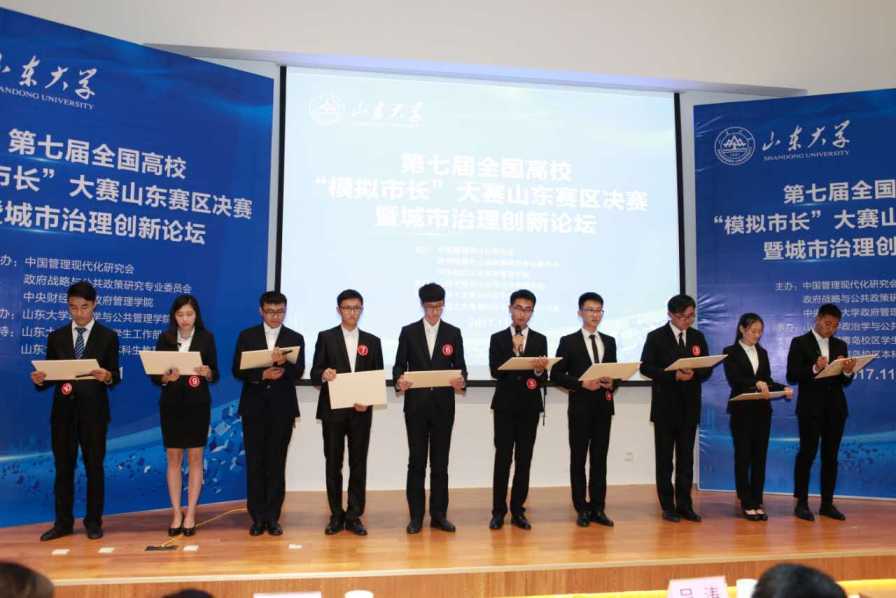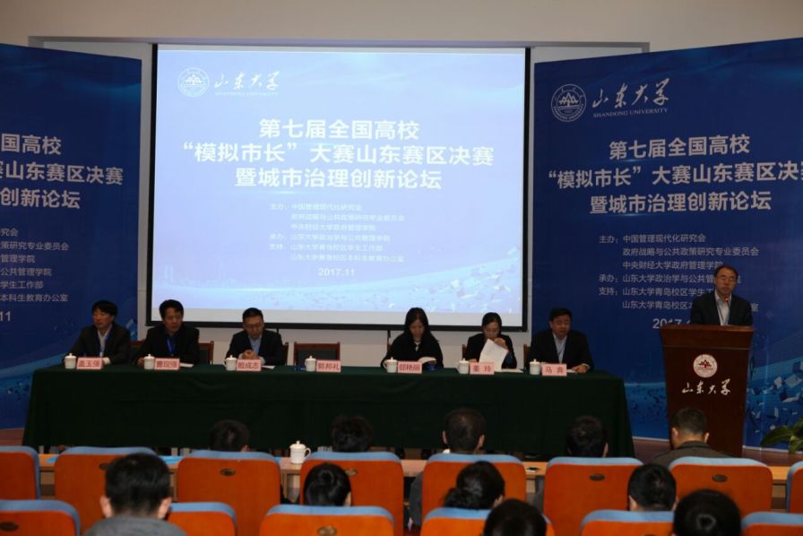 11月11日,第七届全国高校“模拟市长”大赛山东赛区决赛暨城市治理创新论坛在滚球买球的app官网青岛校区成功举办。本次活动由中国管理现代化研究会政府战略与公共政策研究专业委员会和中央财经大学政府管理学院主办,滚球买球的app官网承办,并得到滚球买球的app官网青岛校区学生工作部和本科生教育办公室的支持。来自滚球买球的app官网、中国石油大学、山东师范大学、山东农业大学、青岛大学、济南大学、曲阜师范大学、山东工商学院等高校的10支团队参加了决赛。
