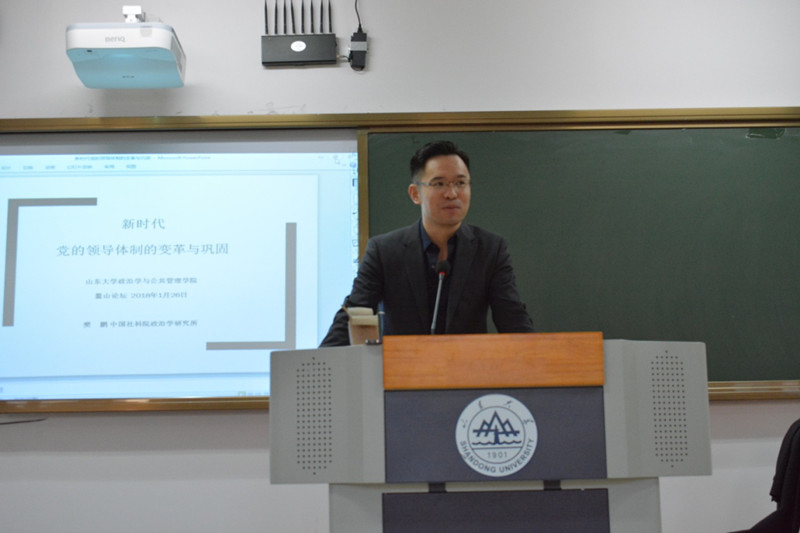 2018年1月26日,新年伊始,中国社会科学院政治学所副研究员樊鹏博士应滚球买球的app官网、滚球买球的app官网公共治理研究院的邀请,做客滚球买球的app官网“鳌山公共事务论坛”(APAF),做了题为“新时代党的领导体制的变革与巩固”的学术报告,滚球买球的app官网常务副院长曹现强教授主持讲座,学院党委书记盖玉强,滚球买球的app官网、公共治理研究院、法学院和其他相关专业的师生40余人参加了此次论坛。