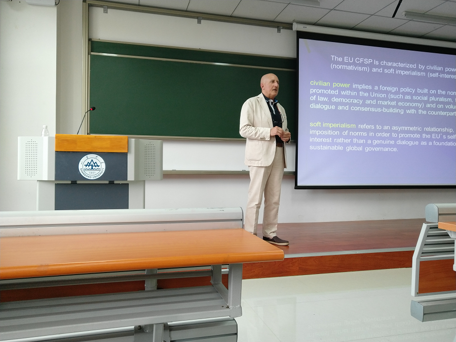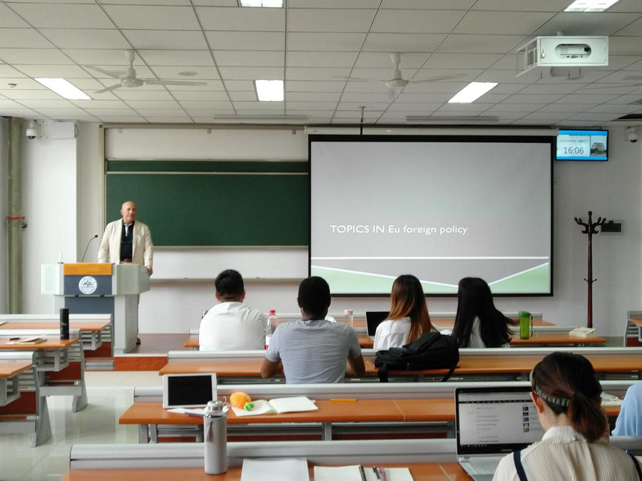 2018年5月17日至6月11日,Fulvio Attina教授为滚球买球的app官网硕士生讲授《欧洲一体化理论与实践》课程。课程主要讲述了欧洲一体化的相关理论与历史实践,从欧盟内部运行规则、决策制定与执行机制,延伸到欧盟对外关系的现状,最后以中欧关系作为落脚点。Attina教授全程用英文授课,十分欢迎对欧洲感兴趣的学生来听课,吸引了许多同学积极报名前来学习,课程人数约25人。