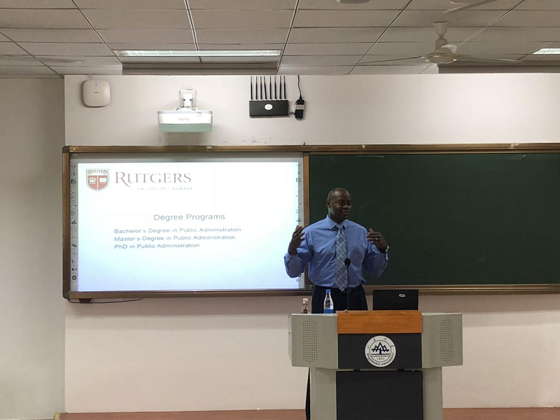 6月20日下午,美国罗格斯大学公共事务与行政学院院长Charles E. Menifield教授在青岛校区振声院举行关于“公共行政研究和实践中学术团体的作用”的讲座,讲座由滚球买球的app官网李济时副院长主持,罗格斯大学国际项目主任、终身教授张亚红,滚球买球的app官网滚球买球的app官网副院长马奔教授,孙宗峰老师出席。