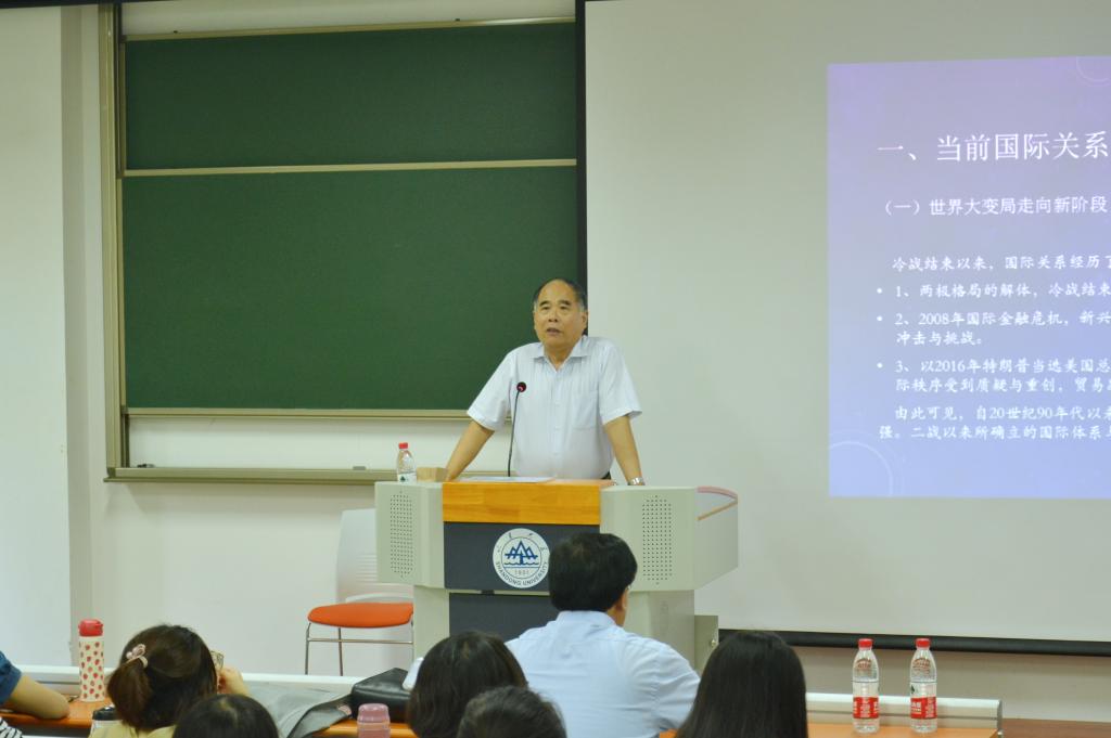 9月13日下午,滚球买球的app官网“研究生学术能力提升计划”系列讲座第二场在青岛校区振声苑举行,中国政法大学教授蔡拓为同学们作了题为“理性与非理性的抉择——当前国际关系的思考”的报告,学院副院长刘昌明主持讲座。