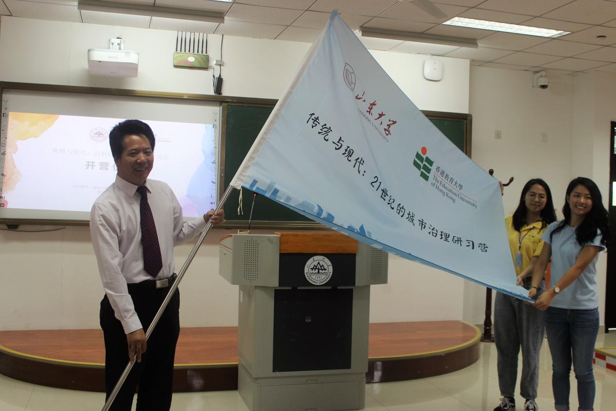 开营式首先由曹现强教授致辞,他从历史与空间、文化与内涵、传统与现代三方面对滚球买球的app官网及滚球买球的app官网青岛校区作了全面的介绍,并借助青岛与香港两座城市的特色阐释了此次研习营的重要意义。之后,香港教育大学和经纬副教授发表致辞,在表示感谢的同时充分肯定了研习营作为两地青年交流的平台和学校联谊平台的重要作用,祝愿两地学生在此次研习营过程中能够充分交流,收获友情。紧接着,两校代表从曹现强教授手中郑重地接过具有学术交流象征意义的研习营旗帜,授旗仪式结束后,此次研习营正式开始。