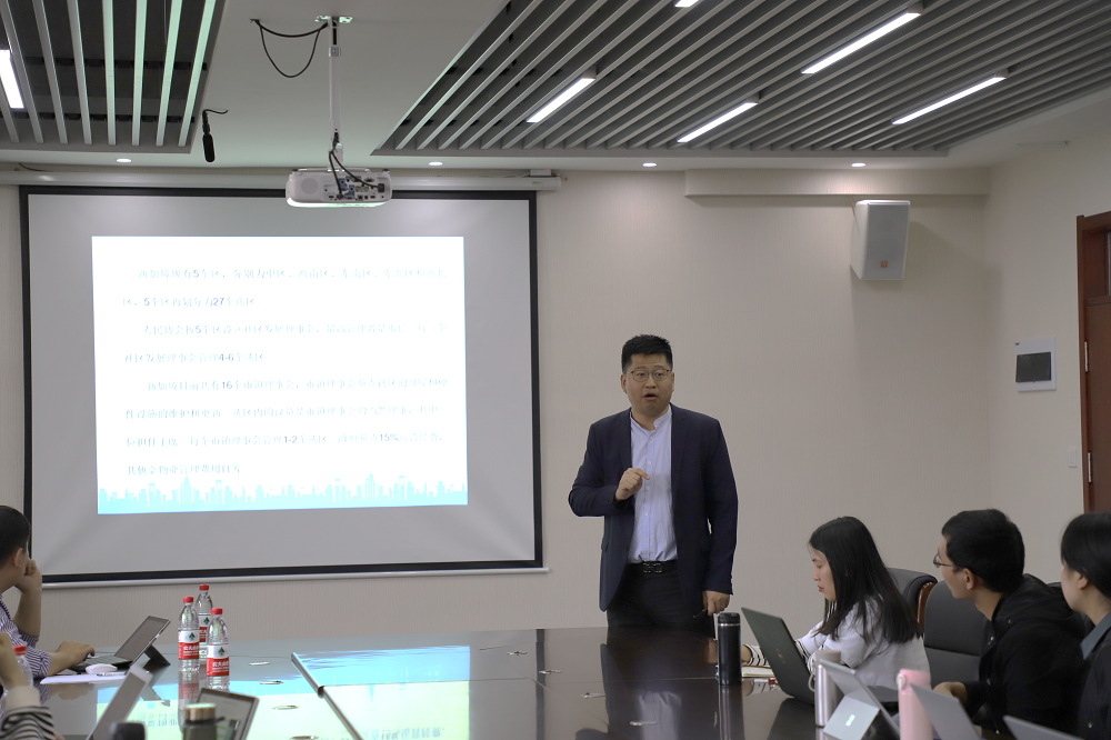 于教授向在场师生详细介绍了新加坡基本国情和政府管理架构。新加坡无论是国土面积还是人口都属于小国,但其人均GDP在亚洲排名第二。新加坡人种构成复杂,宗教信仰多样化,高度密集地居住于城市社区,社区管理难度大。为促进社区的融合,政府采用建造经济适用住宅,通过行政力强行混居的方法促进社区融合和社会和谐。新加坡的社区管理架构也有其特色。以选区为基础,新加坡将其720多平方公里的土地上,画分为5个区,16个社区发展理事会,每一个社区发展理事会管理4-6个选区负责辖区的组屋和硬件设施的维护和更新。公民咨询委员会、民众联络所管理委员会、居民委员会等法定基层组织归人民协会管辖。这些社区管理组织是一种半官方的社会志愿组织,领导和成员由人民协会委任。