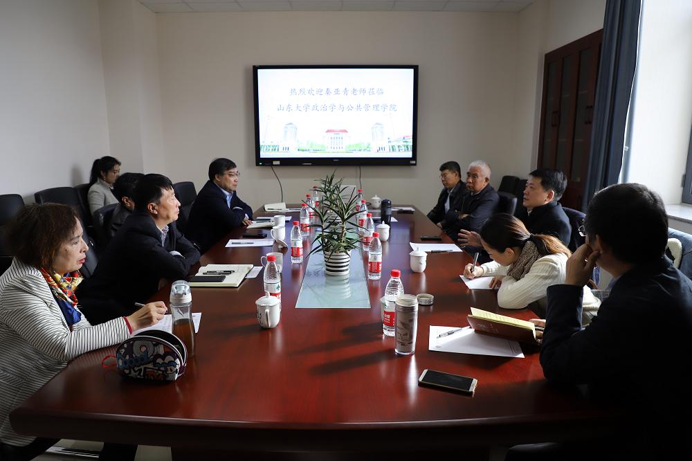 11月18日上午,中国国际关系学会常务副会长秦亚青教授到访滚球买球的app官网,就国际关系学科建设发展与学院师生进行了座谈。座谈会由国际政治专业教授王学玉主持,滚球买球的app官网人文社科青岛研究院院长方雷,滚球买球的app官网党委书记盖玉强出席了座谈会。