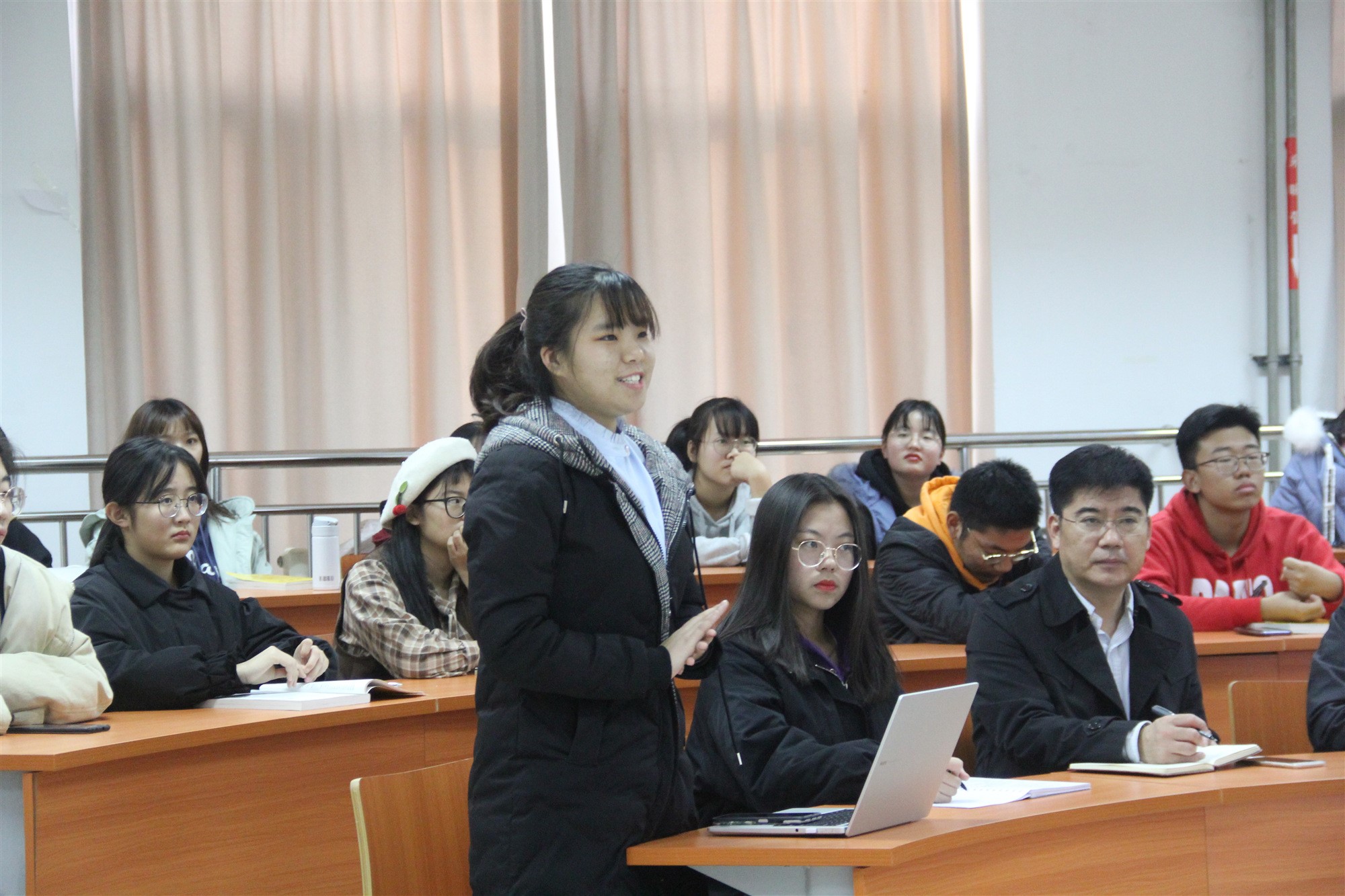 在随后的交流中,孔令栋对同学们提出的问题进行了逐一解答和阐释,他指出,新时代的大学生是十分幸运的一代,也是肩负重任的一代,是我们国家治理体系和治理能力现代化进程的参与者、受益者,他希望大家认真学习学透全会精神,勇担时代使命,坚定制度自信,树立远大理想,不断提高自身能力修养,为国家和社会的发展贡献自己的青春力量,实现人生价值。现场气氛活泼热烈,宣讲引起了同学们的强烈共鸣和认同,不时报以一阵阵掌声。