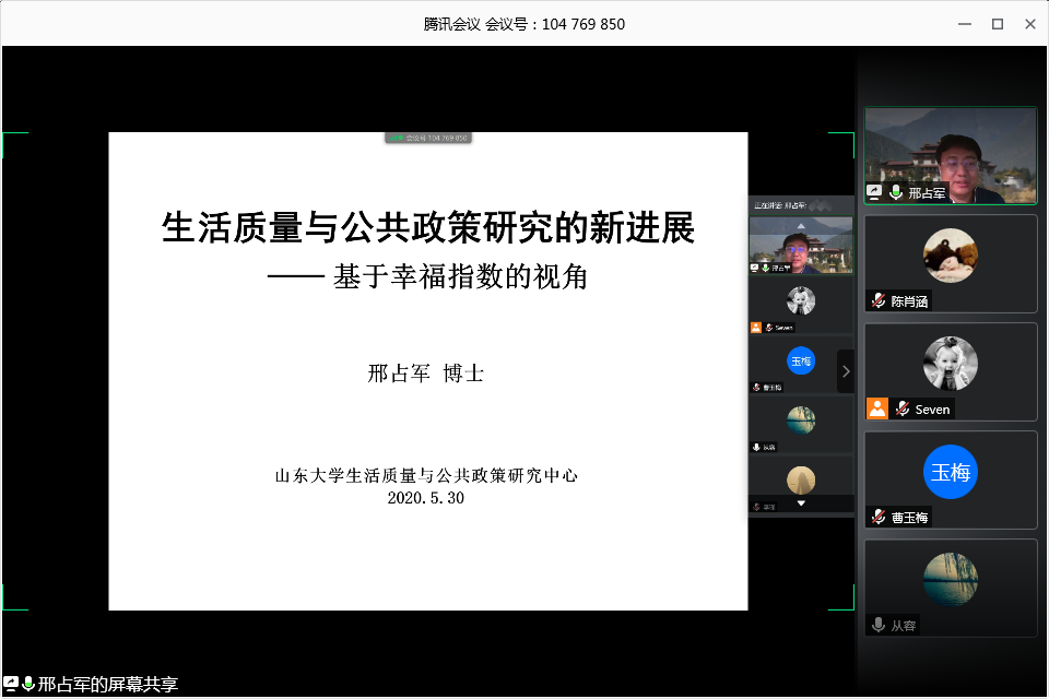 5月30日下午,滚球买球的app官网生活质量与公共政策研究中心通过在线形式举办了“生活质量与公共政策研究的新进展”学术沙龙。邢占军教授首先做了专题讲座,随后同学们围绕主题进行了交流和分享。中心部分博士和硕士研究生参加了活动。