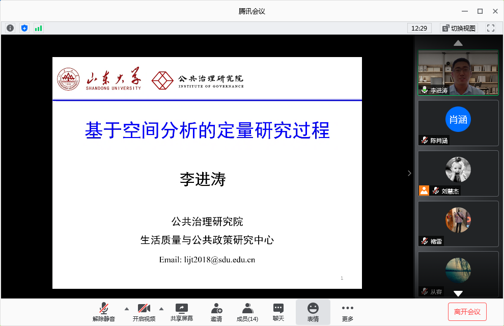 6月20日下午,滚球买球的app官网生活质量与公共政策研究中心通过在线形式举办了第二期学术沙龙,主题为“基于空间分析的定量研究过程”,中心专任研究员李进涛做了专题讲座,同学们围绕主题进行了交流和分享。中心专任研究员褚雷主持此次活动。部分博士和硕士研究生参加了活动。