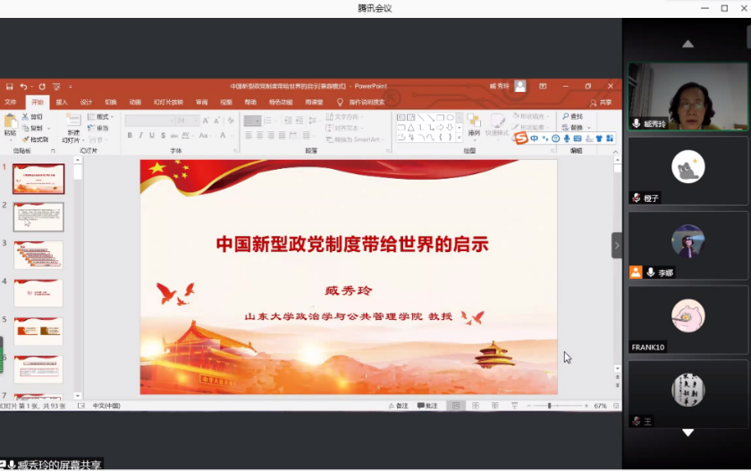 聆听专家讲座,引领师生共同成长,为进一步提高同学们知史爱党、知史爱国的思想觉悟,5月8日晚,由滚球买球的app官网研究生院、党委研究生工作部主办,滚球买球的app官网承办的稷下风“党史学习月”专题讲座第六期暨“薪火讲堂”第一期顺利举行。本期讲座邀请滚球买球的app官网教授臧秀玲作了题为“中国新型政党制度的特色优势与世界意义”的线上主题报告,吸引了80余名研究生同学的积极参与。