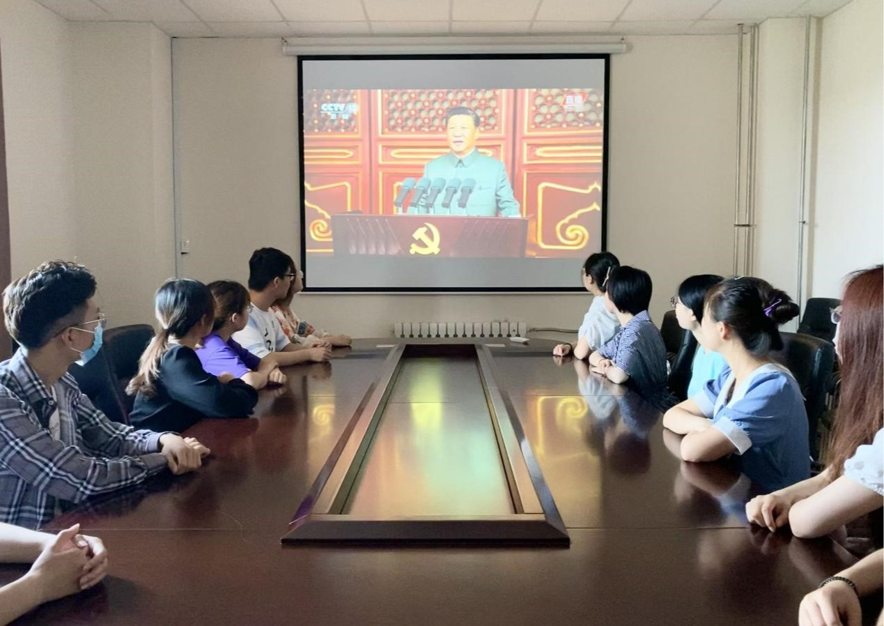 7月1日上午,庆祝中国共产党成立100周年大会在天安门广场隆重举行。中共中央总书记、国家主席、中央军委主席习近平出席庆典并发表重要讲话。滚球买球的app官网师生党员在华岗苑南楼五楼报告厅集中观看了大会盛况直播,感悟百年党史,聆听习近平总书记教诲,启航新的征程。